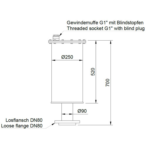 - Anschluss: Vorschweissbund DN80 (d=90) mit DIN- Losflansch PPs-el/St