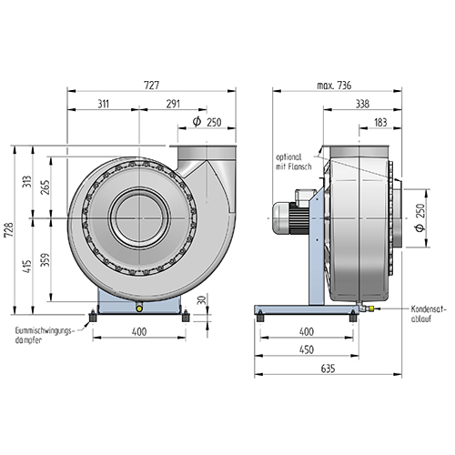 Radialventilator HFR 250-17 D/ 4/ Exd Z1