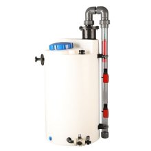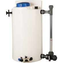 DOSIERBEHÄLTER MIT SEILZUG-FÜLLSTANDSANZEIGE- geschlossener, runder, zylindrischer, stehender Behälter aus UV-Stabilisiertes Polyethylen, lebensmittelecht, mit Schraubdeckel blau und Dichtung - Farbe: natur transparent, stoß- und schlagfest - nahtlos im Rotationsschmelzverfahren hergestellt. - eingeformte Literskala und mitgeformte Montagebrücke für Dosierpumpen, Rührwerke, Handstampfmischer, Handrührwerke etc. - 3/4" Auslauf (Innengewinde) mit Stopfen, Auslauf nicht aufgebohrt ausgerüstet mit: - seitlich eingeschweißtem PE Stutzen mit V-Bund und PP/ST Flansch DN 15, d 20 mm - oben aufgeschweißten Verschraubungsanschluss aus PE, DN 25, d 32 mm - innenliegendes Führungsrohr aus PE mit Schwimmer, Anzeige erfolgt über Seilzug und außenliegender Füllstandsanzeige aus PVC Transparent mit PP Schwimmer - aufgeschweißten PE Rohrklemmen aus PE zur Aufnahme der Füllstandsanzeige - eingeschweißtem PE Bogen mit 2- Wege Ablaufkugelhahn DN 15, da 20 mm aus PP/EPDM und aufgeschweißter PE Rohrklemme Sie können den Dosierbehälter mit Seilzug Füllstandsanzeige und Schwimmer im Webshop direkt online einkaufen. Andere Anschlussvarianten auf Anfrage möglich. |