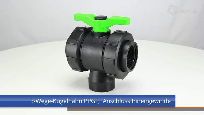 3-Wege-Kugelhahn PPGF, Innengewinde, FPM = grüner Hebel