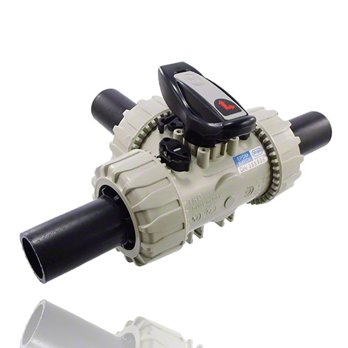 PP Kugelhahn 3-Wege, L-Bohrung, PE100-LS-Stutzen, FPM