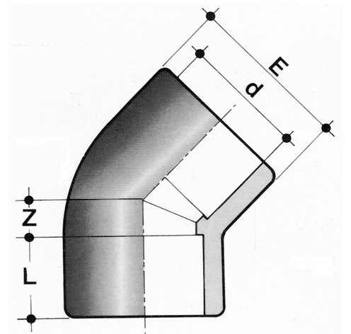 PVC U Winkel 45°, Klebemuffe